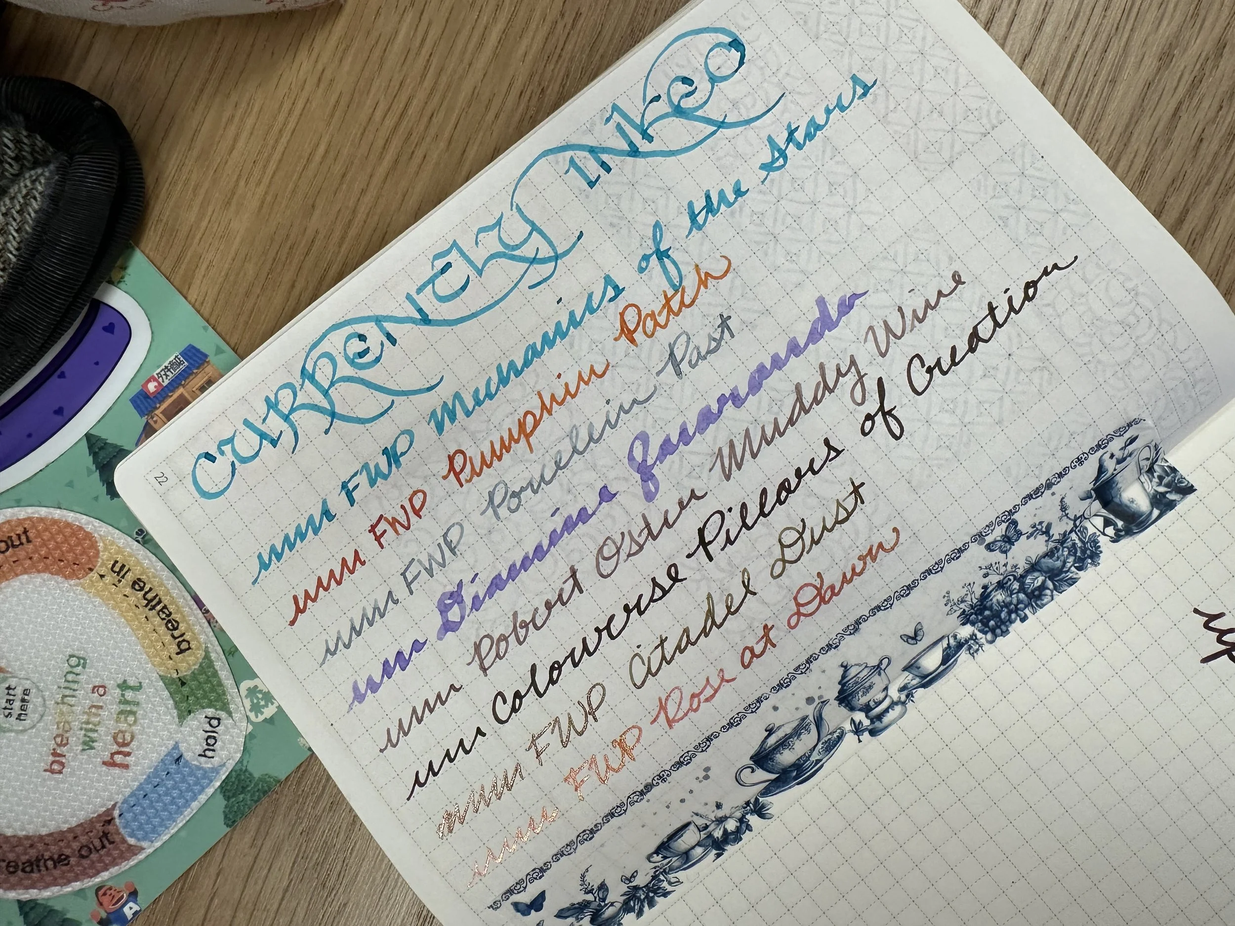 Ferris Wheel Press Porcelain Past - FWP x LOTR Bijou Gandalf - This is one of the newest releases from FWP and when I first saw the swatches I worried it would be too light to be practical. A soft china (as in the dishware) blue is the perfect way to describe this color. It’s dark enough to be legible and reminds me of a bluer version of Diamine Celadon Cat (more teal) or FWP Harlequin Dream (way more purple). I may have to do a head to head comparison at some point.