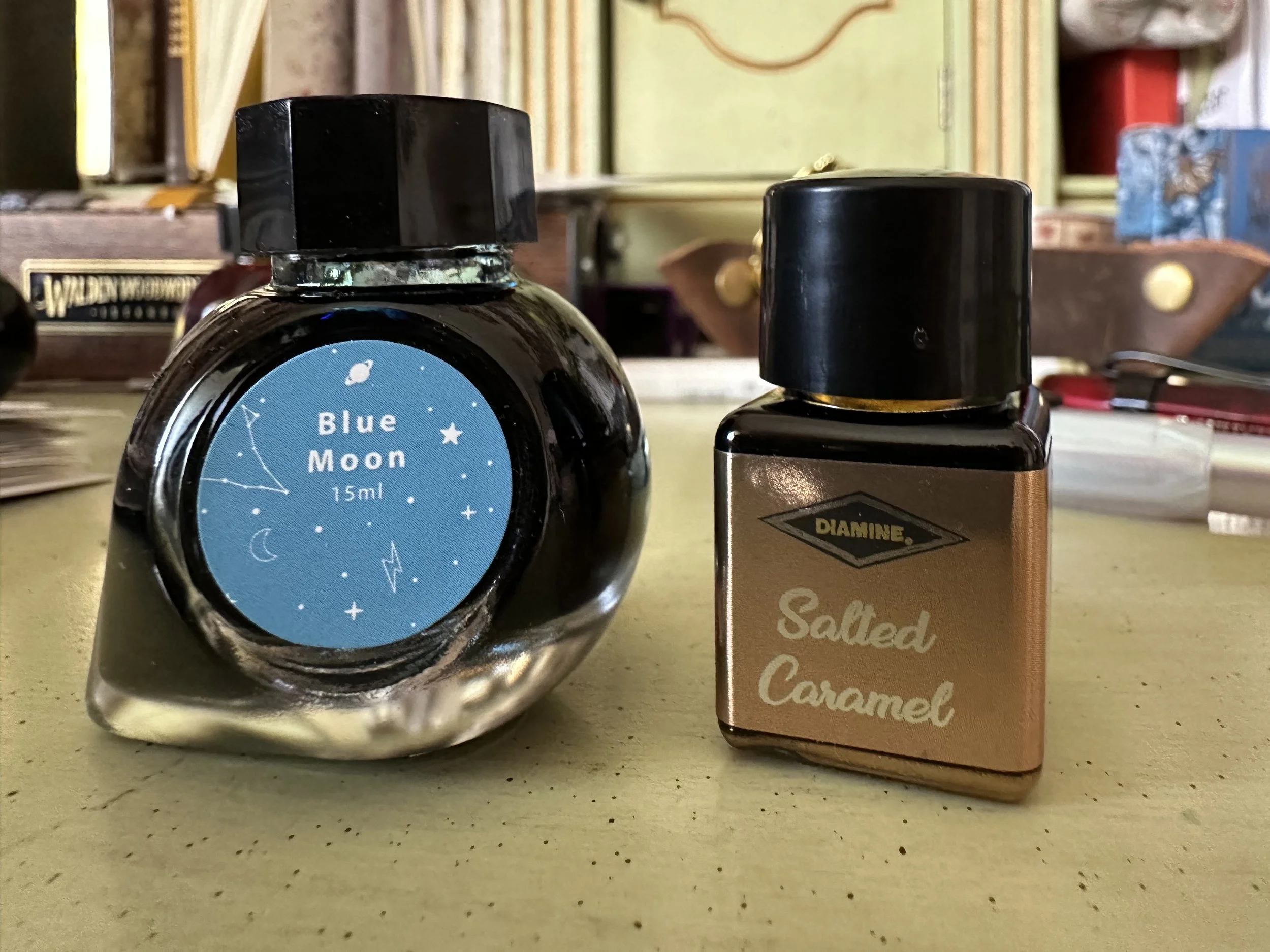 Other inks I’ve tried from this year’s set: Supergiant (I have been regaining my love of red inks and this bright true red fits right in), Aquarius Whispers (This is a bright turquoise with an intense shading. Very fun.), White Hole (I completely dismissed this ink as a miss when I was swatching because it didn’t show much character on the tomoe river paper. On a whim I inked it up in my Esterbrook JR B nib and found I really like it. It is a soft shading blue that is pretty legible on most papers).