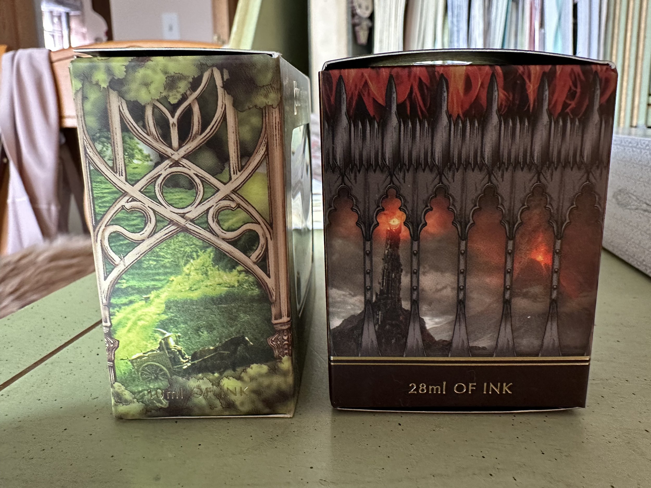 In a larger sense of the collection, the design is very enjoyable as a LOTR fan. FWP usually goes all out with the boxes for their inks and pens, but I feel like these ones were made with such care. Even the small bottles have themed packaging. It’s a functional, fan display piece.