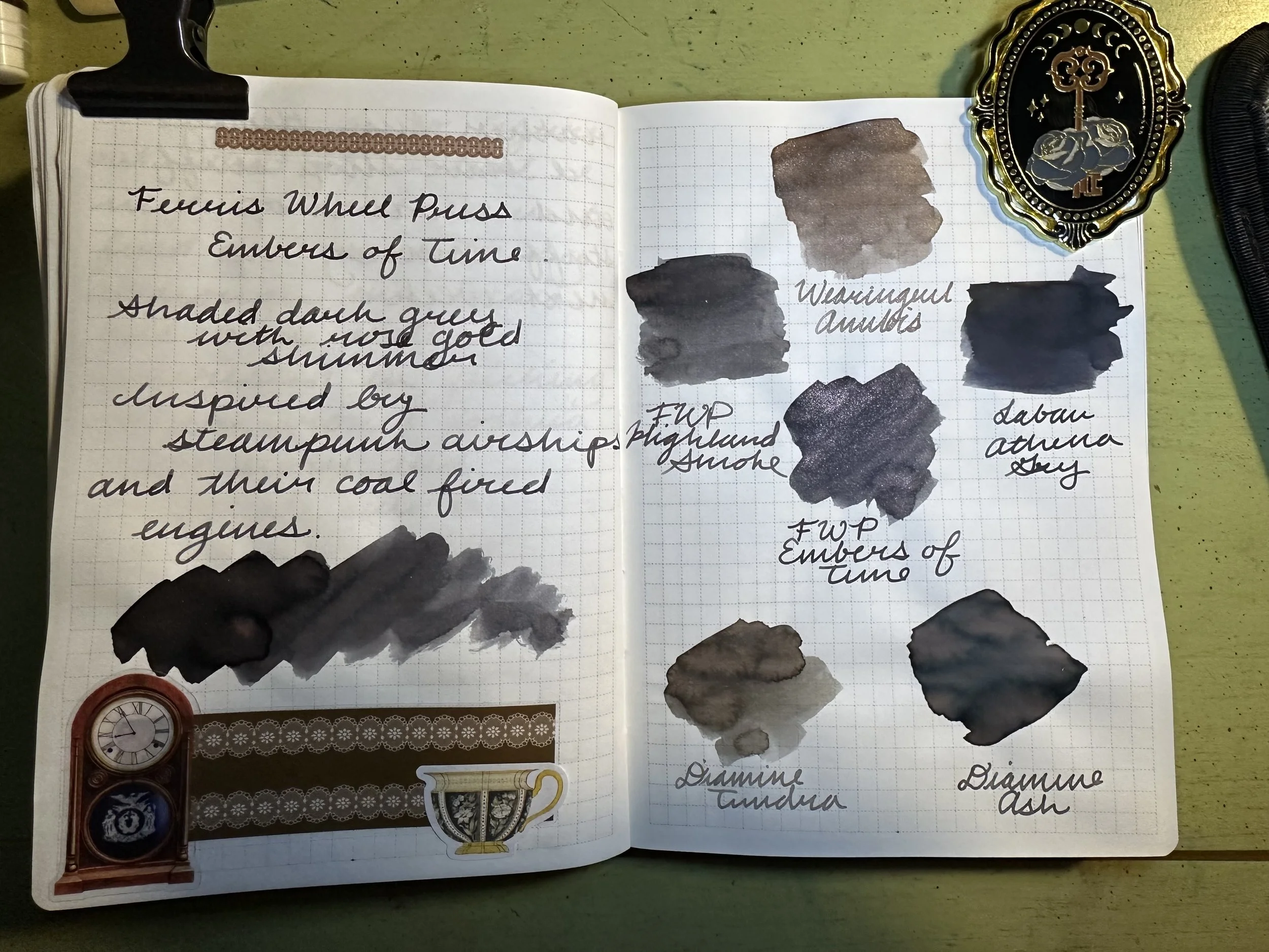As far as gray inks go, I definitely have a type. In general I lean towards warm grays. Embers of Time is sitting right on the cusp of being cool toned. I think the shimmer helps keep it on the warm side though. As I flipped through my gray inks I actually had a hard time finding anything close. In fact, some that I thought would be close are actually pretty different.