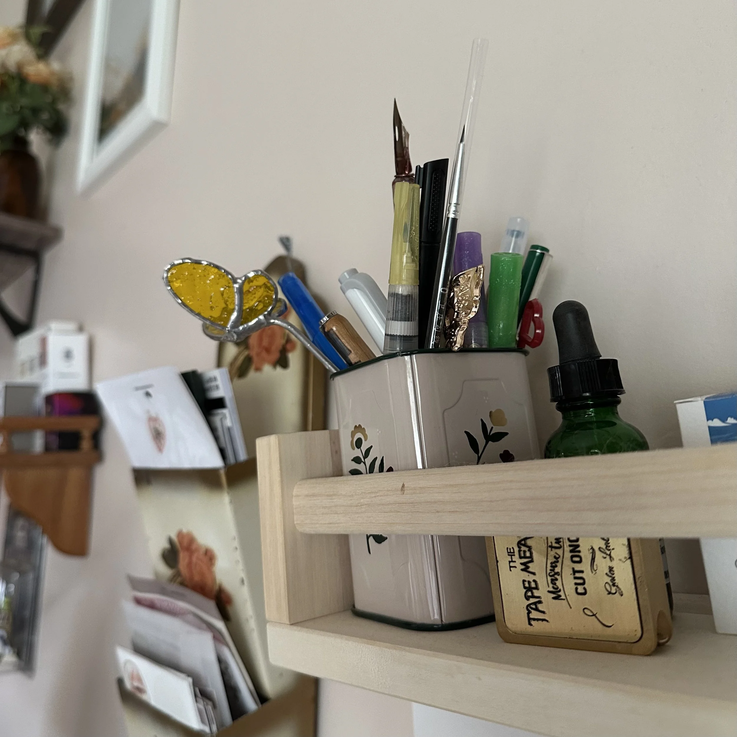Since 2025 was so hectic in the outside world, it was nice to slow down and sometimes just appreciate the little things around my writing desk. I bought the little stained glass butterfly at a craft fair last year and it makes me smile when I look up to see it dangling out of my miscellaneous pen cup.